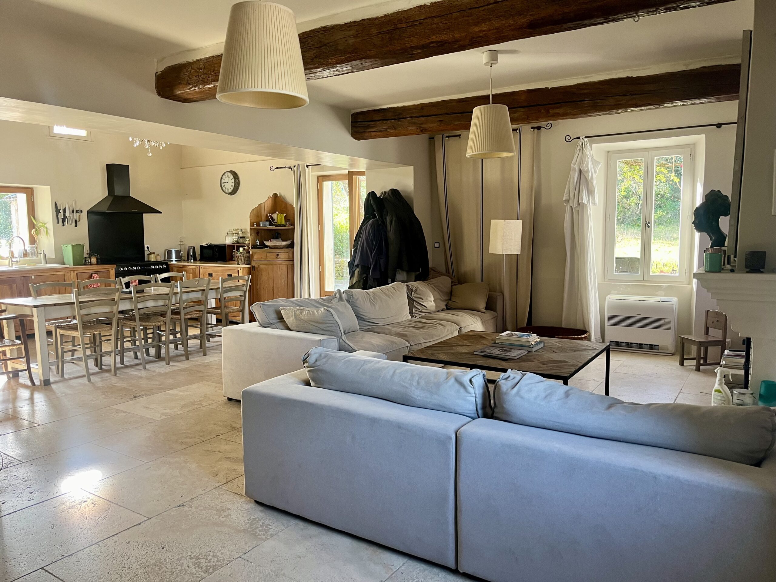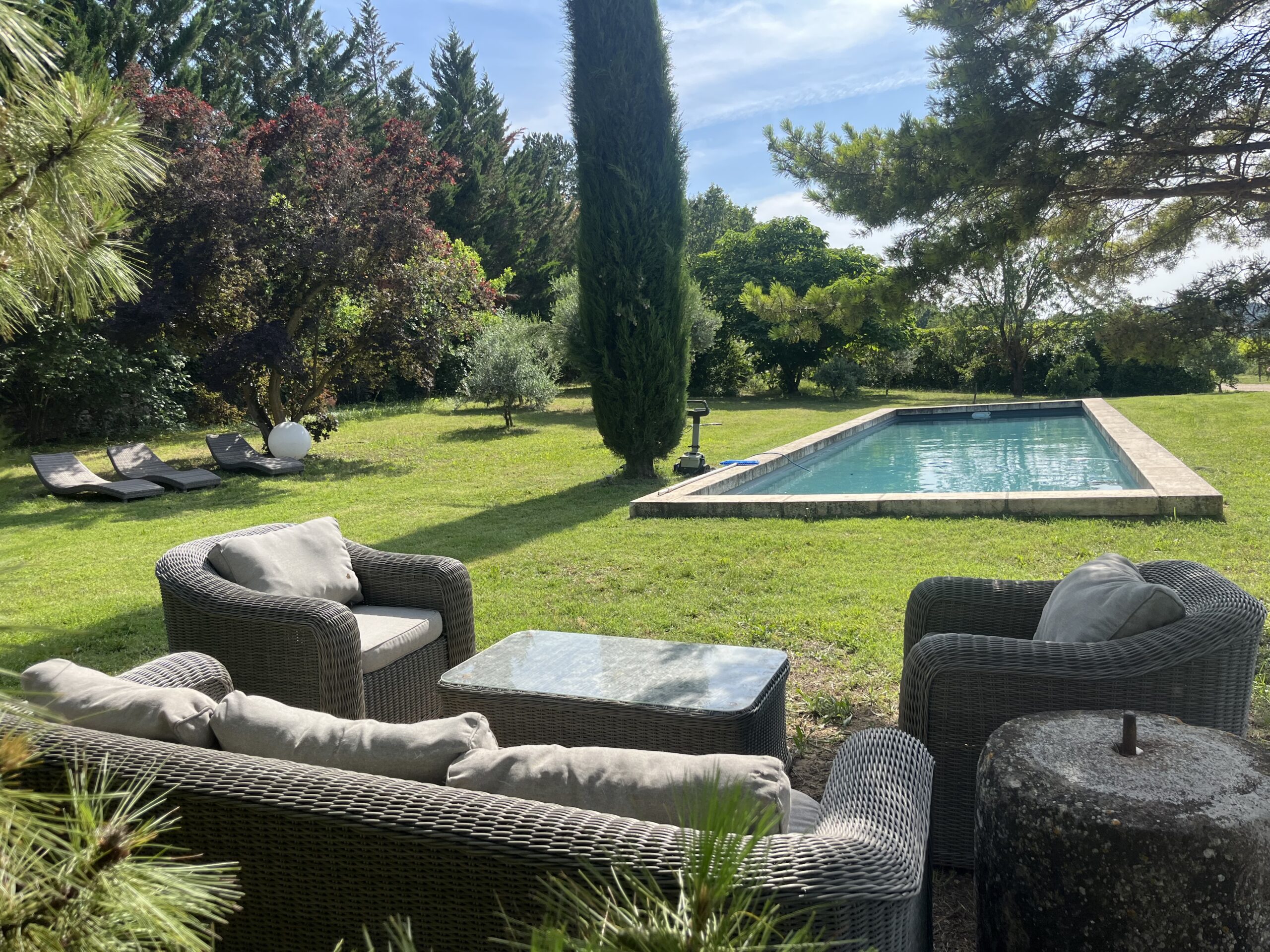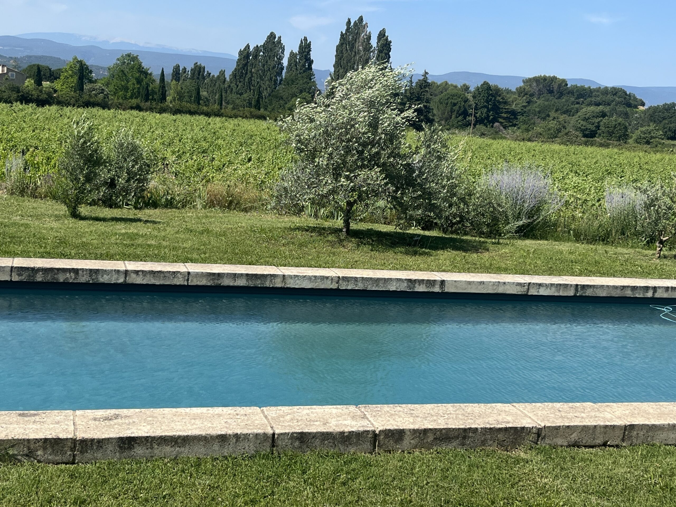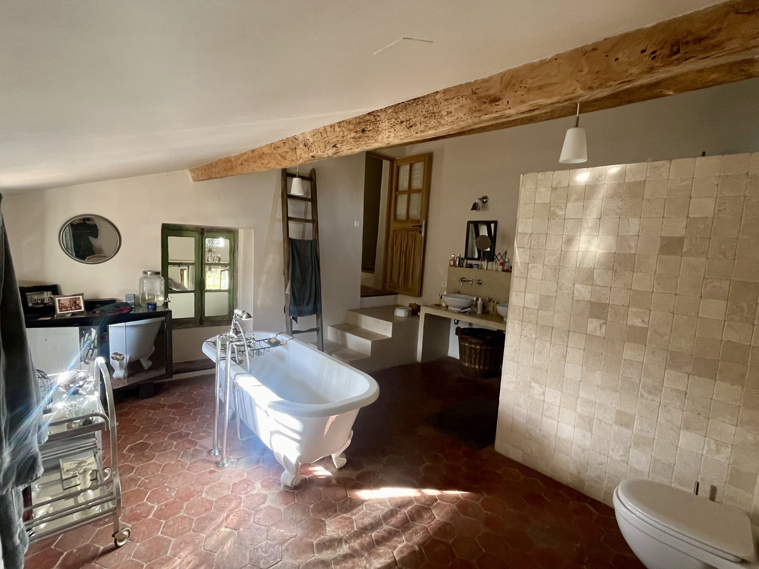 Idéalement situé à 1 km du magnifique et authentique village de Bonnieux, dans un cadre idyllique entre vignes et cerisiers, sans aucune nuisance et avec de très belles vues sur le Mont Ventoux et les villages de Lacoste, Roussillon, Gordes.., très beau mas totalement indépendant dans propriété datant de 1718, avec bassin de nage de 4 X 15 mètres sur beau terrain comprenant : en rez de jardin : très bel espace de vie de 60 m2 (salon salle à manger, cuisine ouverte), salle de douche avec wc, une chambre; puis au 2ème étage par escalier intérieur 3 chambres indépendantes avec vue sur Lacoste et le mont Ventoux, très belle salle de bains de 17 m2 avec grande douche, baignoire, double vasque, wc suspendus et tommettes anciennes au sol. Les beaux matériaux anciens donnent un charme indéniable à la propriété : tomettes anciennes, travertin, poutres… Terrasse avec barbecue, pièce dédiée au tennis de table… Autres logements possibles selon disponibilité dans la propriété, voir dernière photo pour une meilleur compréhension…